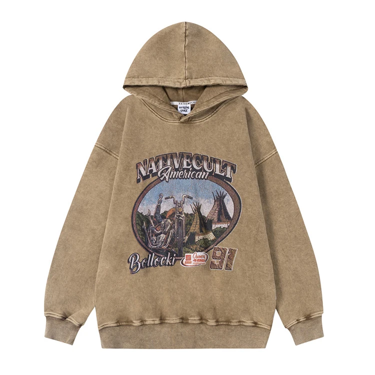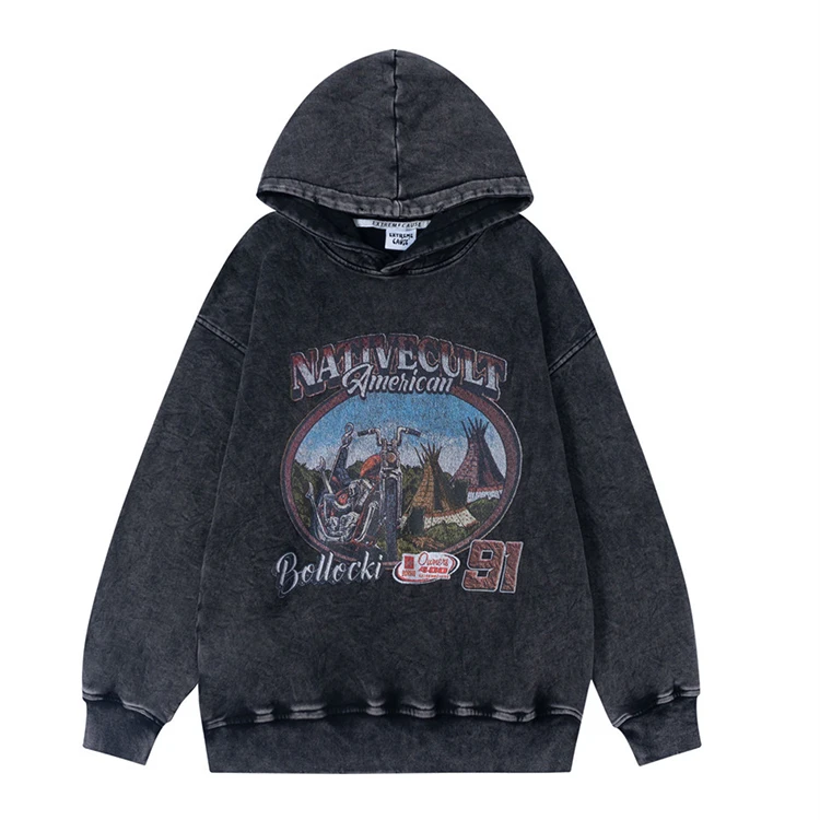 Custom Men's Vintage Wash Distressed Graphic Print Pullover Hoodie